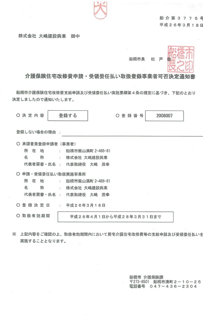 当社は船橋市の住宅改修登録事業者に加入しております。